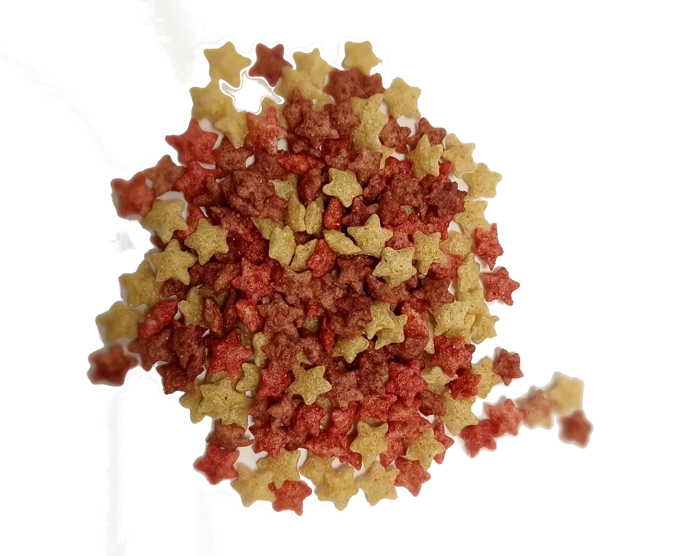 The hail of stars for breakfast! The extrudate consists of oat, wheat and maize flour. We achieve the sweetness by adding rice syrup and chicory root fibre. Our selected organic fruit juices are responsible for the colour and excellent taste. A colourful, healthy and nutritious treat for children.